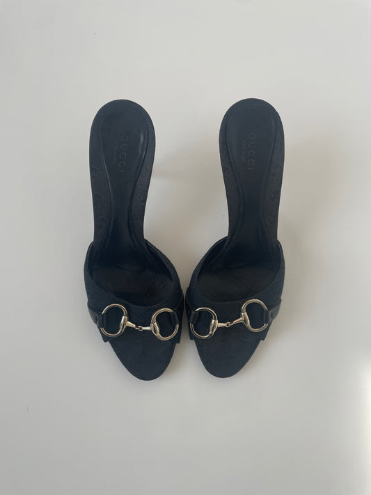 Gucci 2000s black horsebit monogram sandal heels (EU 37,5 / US 7)