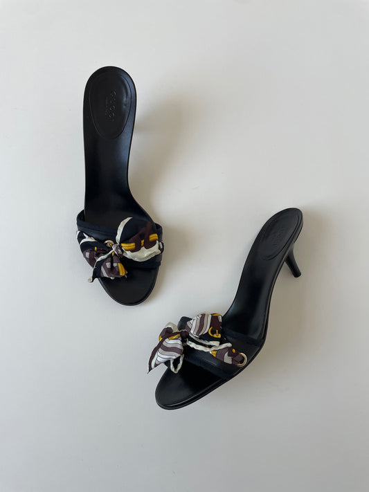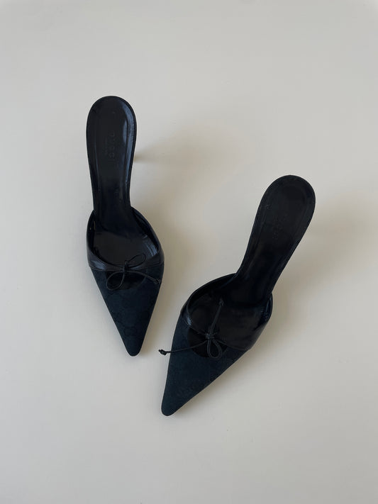 Gucci 2000s by Tom Ford black bow monogram mules (EU 39 / US 8.5)
