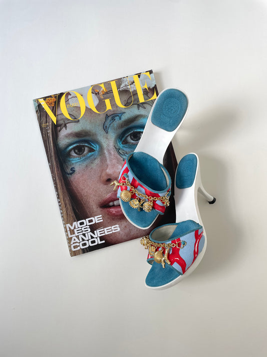 Gianni Versace 2000s white sea shell and coral charm platform heels (EU 37/ US 6.5)