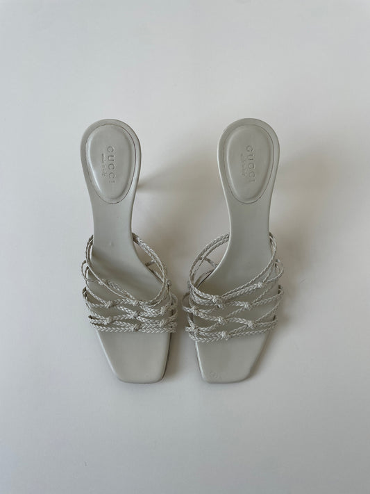 Gucci 2000s by Tom Ford cream white skinny strappy braided sandals (EU 37,5 / US 7)