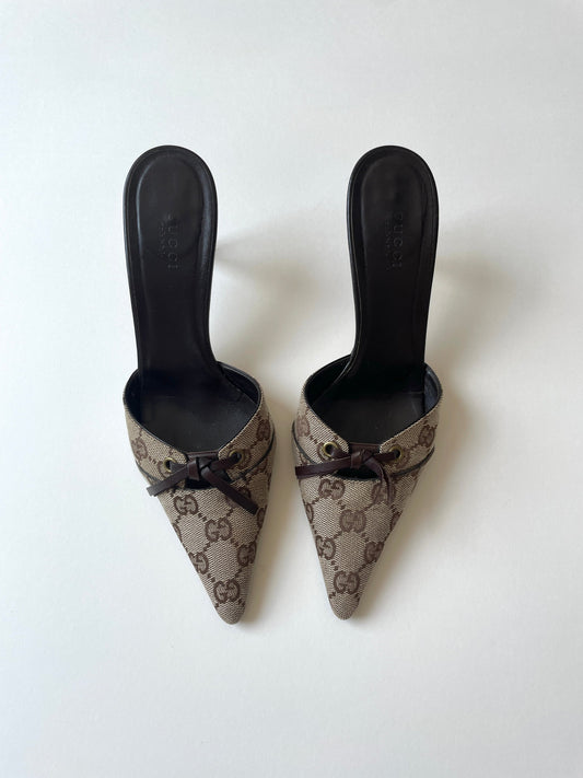 Gucci 2000s brown bow monogram mules (EU 36 / US 5.5)