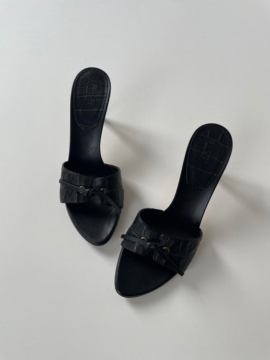 Gucci 2000s black croco leather and bow heel sandals (EU 37,5 / US 7)