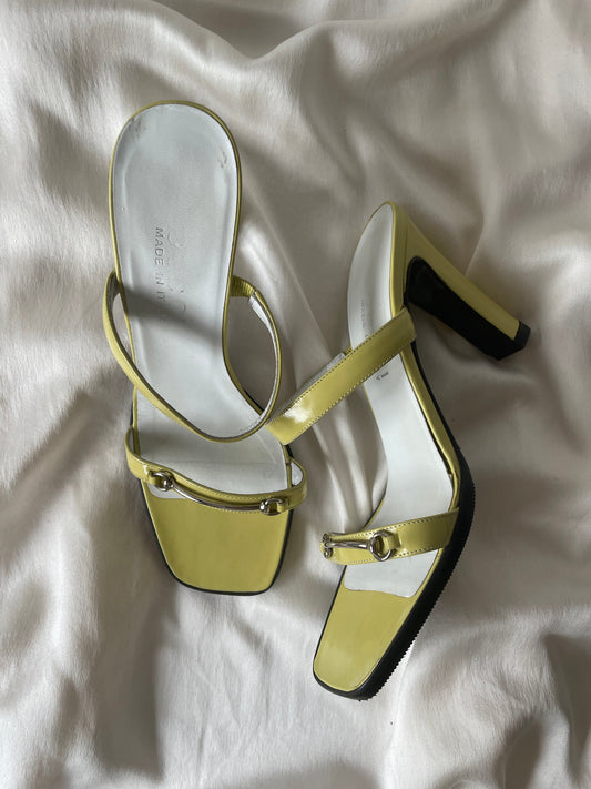 Gucci by Tom Ford 2000s yellow flora bamboo horsebit heels UNWORN (EU 40,5 / US 10)