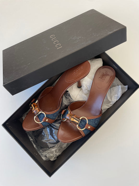 Gucci by Tom Ford denim bamboo monogram horsebit heels (EU 35 / US 4.5)