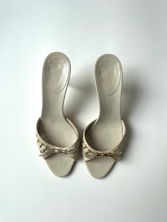 Gucci by Tom Ford off-white mini bamboo and bow heel sandals (EU 38 / US 7.5)