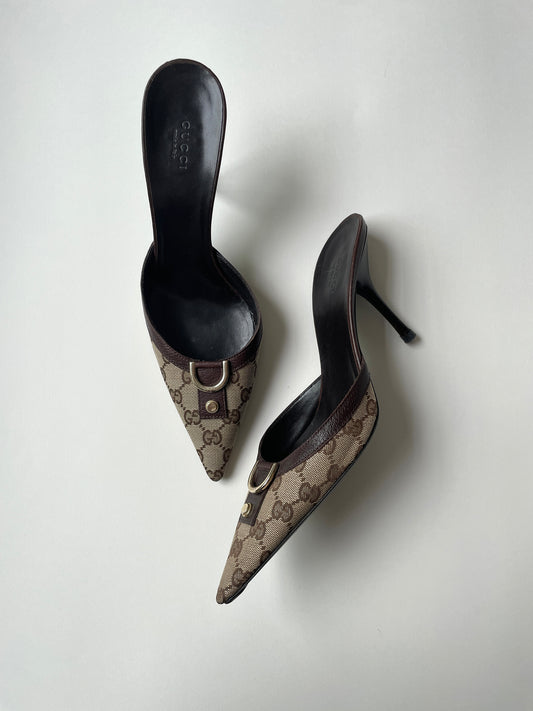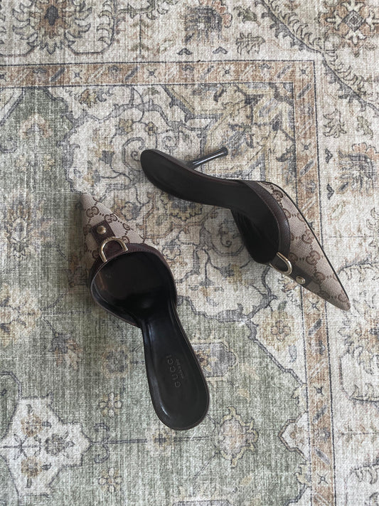 Gucci by Tom Ford brown D-Ring monogram mules (EU 38 / US 7.5)
