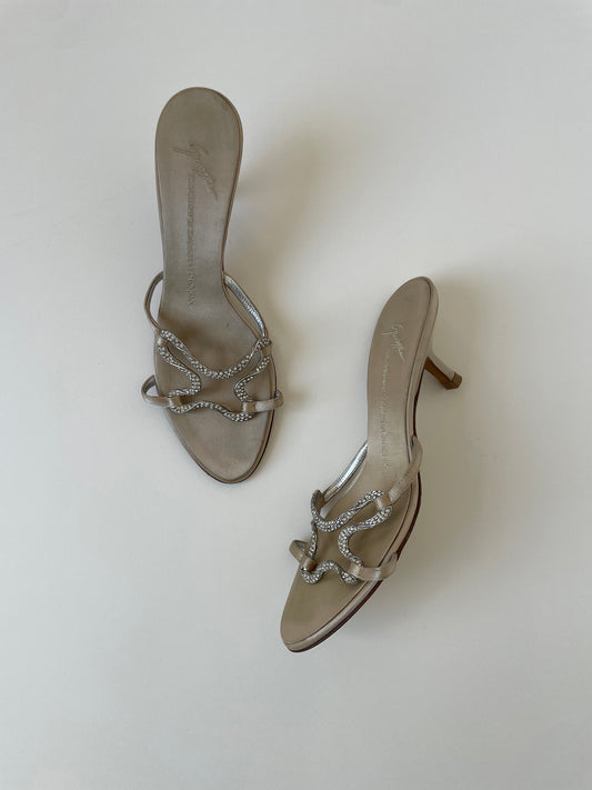 Guiseppe Zanotti 2000s beige satin rhinestone kitten heels (EU 38,5/ US 8)