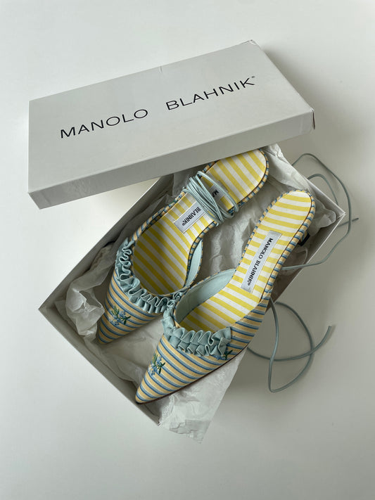 Manolo Blahnik 2000s iconic ruffle embroidery striped kitten heels (EU 39 / US 8.5)