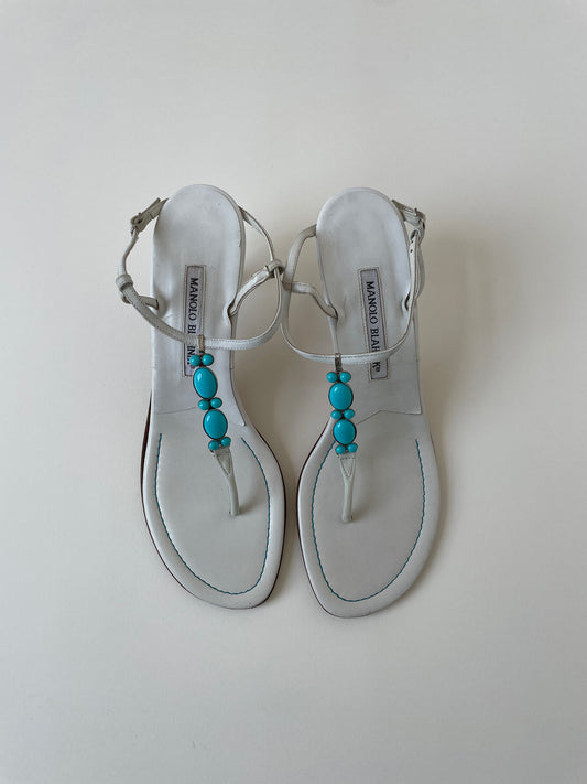 Manolo Blahnik 2000s white jewelry thong kitten heels (EU 39 / US 8.5)