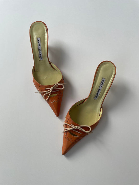 Manolo Blahnik orange lace kitten heel mules Carrie Bradshaw (EU 40,5 / US 9.5)