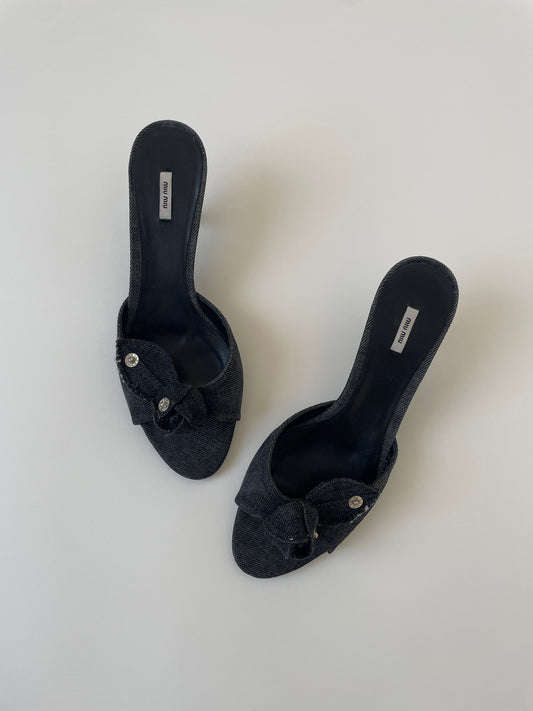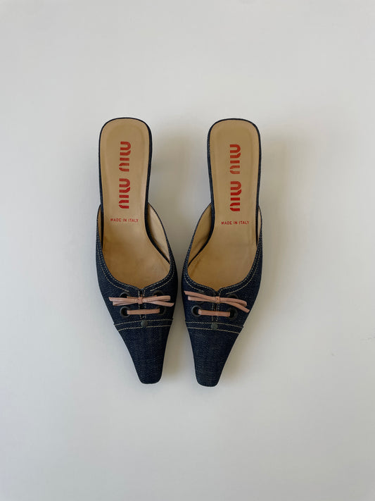 Miu Miu 2000s denim bow kitten heels (EU 37 / US 6.5)