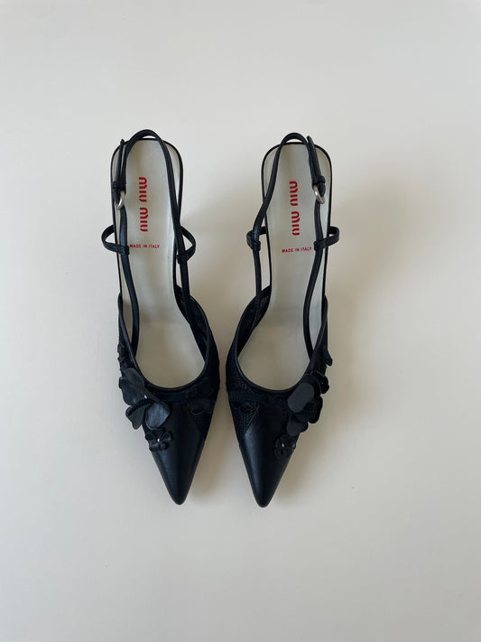Miu Miu 2000s black floral mesh slingbacks (EU 40 / US 9.5)