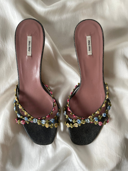 Miu Miu 2000s denim velvet floral platform heels (EU 38 / US 7.5)