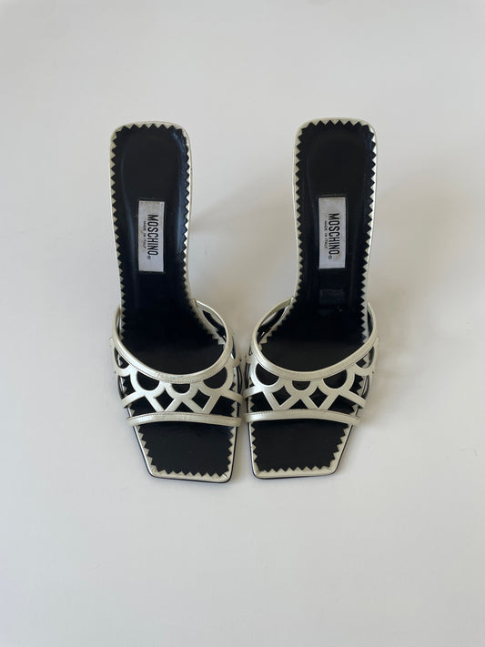 Moschino 2000s white pearlescent cutout heels (EU 38 / US 7.5)