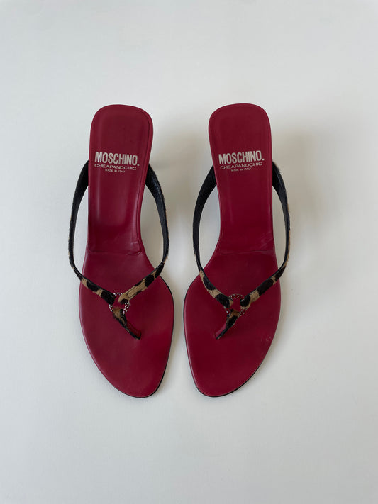 Moschino 2000s wine red leopard thong kitten heels (EU 40,5 / US 10)