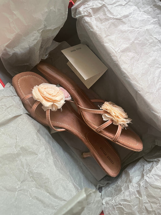 Prada 1990s brown rosebud kitten heel sandals (EU 37 / US 6.5)