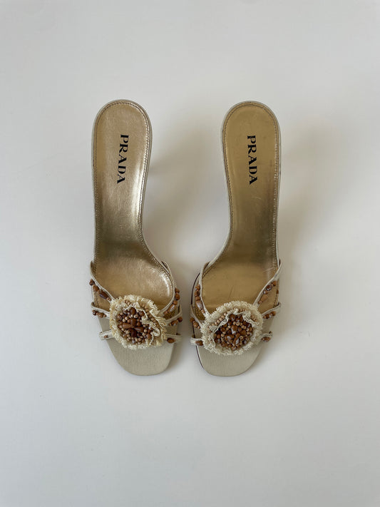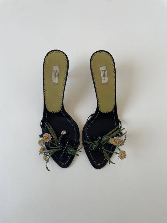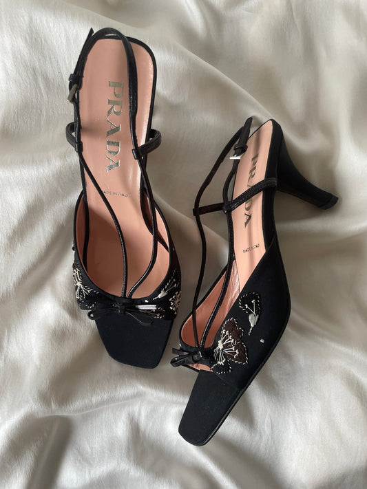 Prada 2000s flower application bow kitten heels (EU 41 / US 10)
