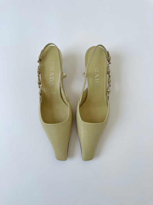 Prada 2000s butter yellow sling back kitten heels UNWORN (EU 39 / US 8.5)