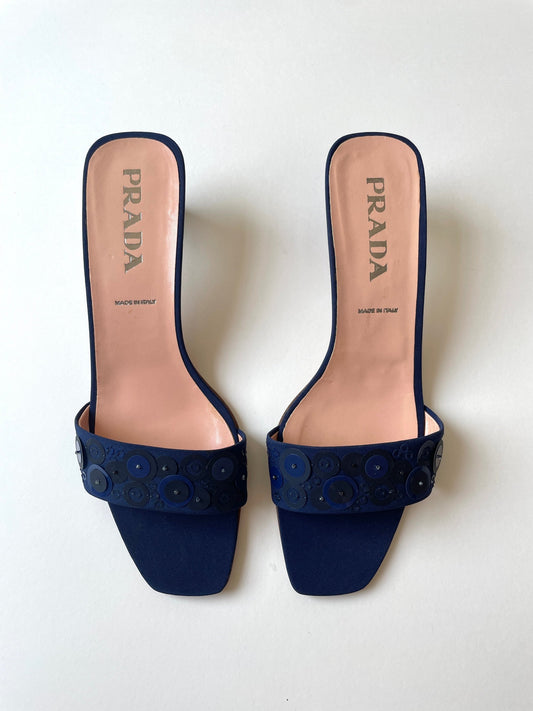 Prada 2000s dark blue silk & sequin kitten heels UNWORN (EU 39,5 / US 8.5)