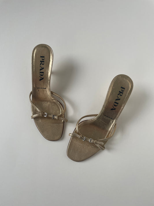 Prada 2000s golden skinny strappy kitten heels (EU 36 / US 5.5)