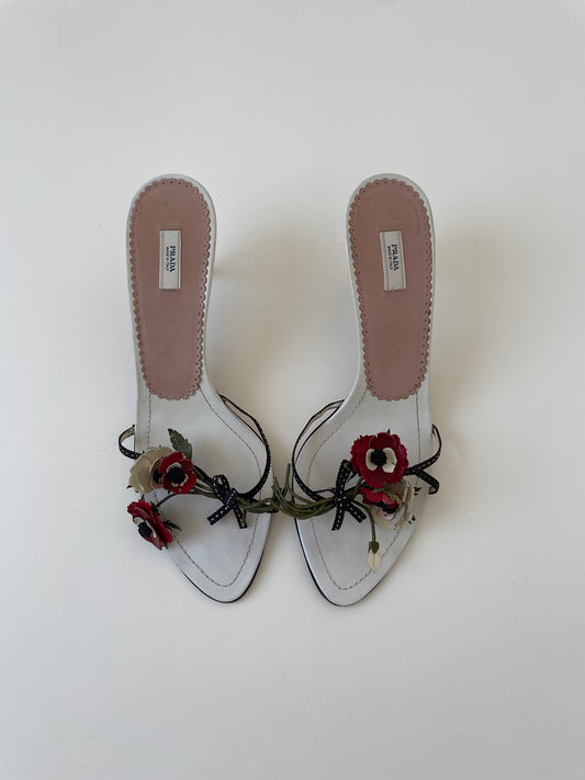 Prada 2000s white flower application bow kitten heels (EU 40 / US 9.5)