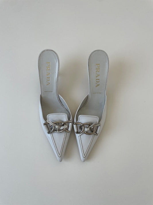 Prada 2000s white mini buckle kitten heel mules (EU 37 / US 6.5)