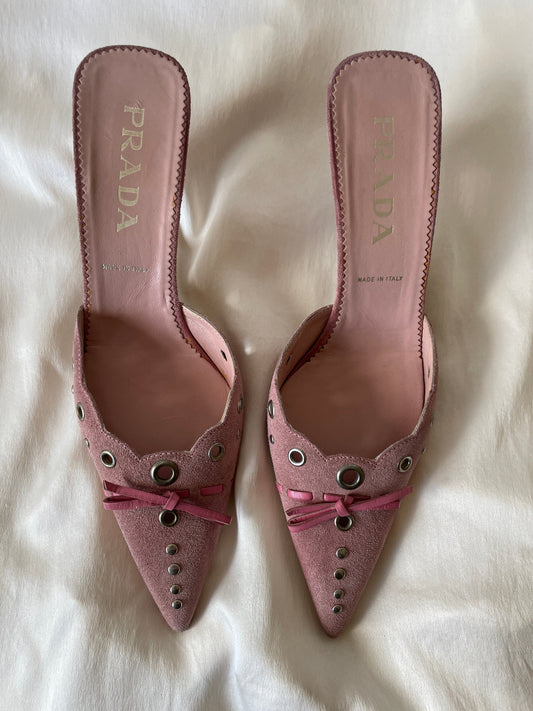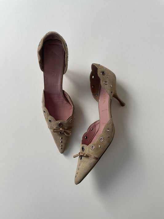 Prada 2000s suede eyelet bow D'Orsay heels (EU 38 / US 7.5)