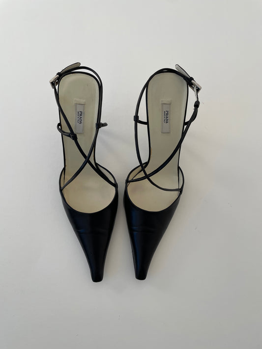 Prada CBK black skinny strappy slingback heels (EU 37 / US 6.5)