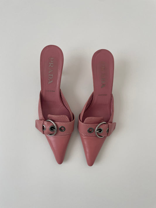 Prada S/S 2002 rose pink buckle kitten heel mules (EU 37,5 / US 7)