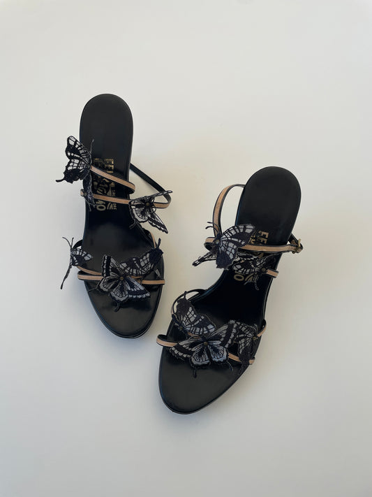 Salvatore Ferragamo 2000s butterfly black patent leather wedges (EU 38 / US 7.5)