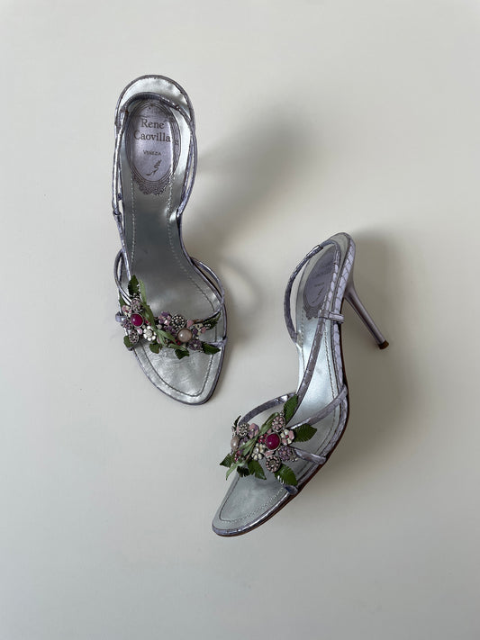 Rene Caovilla 2000s silver lilac garden jewelry sandal heels (EU 36,5 / US 6)