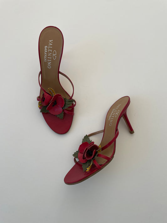 Valentino Garavani 2000s red flower application kitten heels (EU 37 / US 6.5)