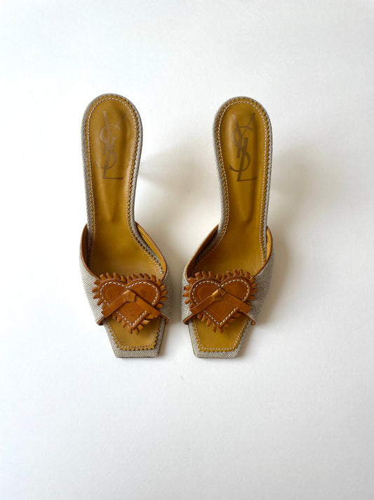 YSL iconic 1990s linen bow & heart heels (EU 37/ US 6.5)