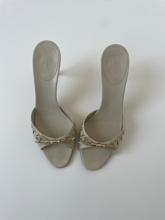 Gucci by Tom Ford off-white mini bamboo and bow heel sandals (EU 39 / US 8.5)
