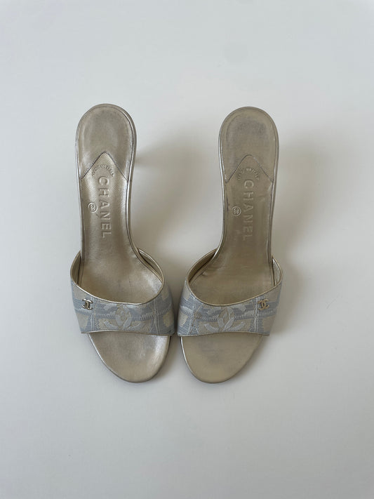 Chanel 2000s by Karl Lagerfeld golden travel CC kitten heels (EU 39,5 / US 9)