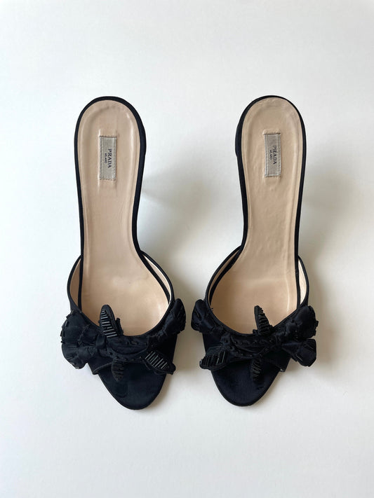 Prada black beaded pearls & silk sandal heels (EU 40/ US 9)