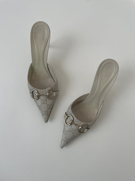 Gucci 2000s off white horsebit monogram mules (EU 39,5 / US 9)