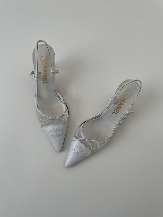 Chanel iconic CC white mesh and bow sling back (EU 36 / US 5.5)