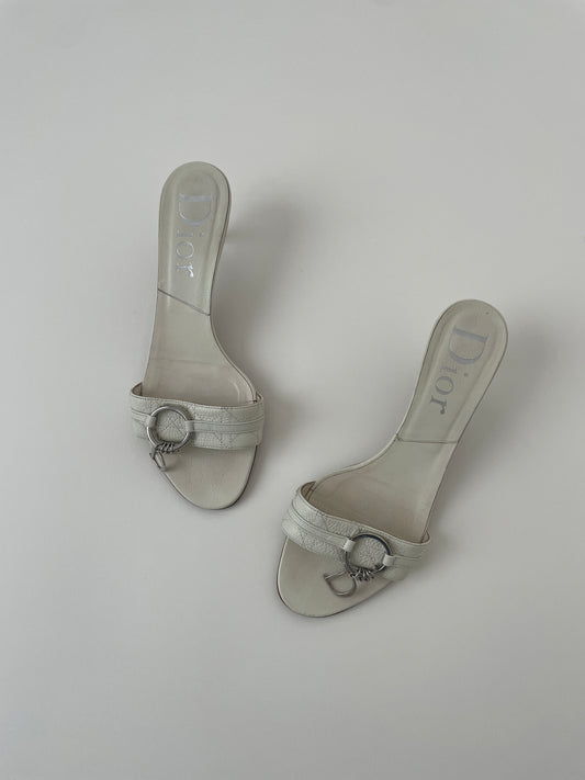 Christian Dior by John Galliano 2000s off white logo charm kitten heel (EU 37,5 / US 7)