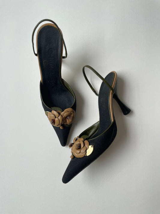 Chanel roses sling backs / mules (EU 37 / US 6.5)