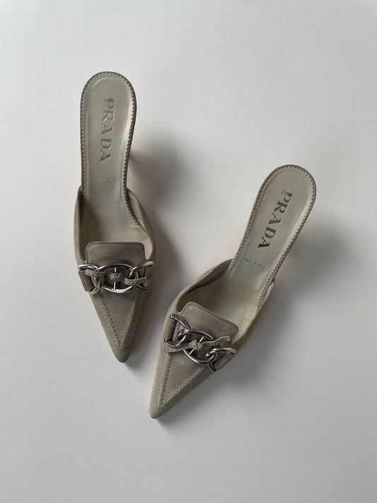 Prada 2000s ivory suede kitten heel mules (EU 37,5 / US 7)