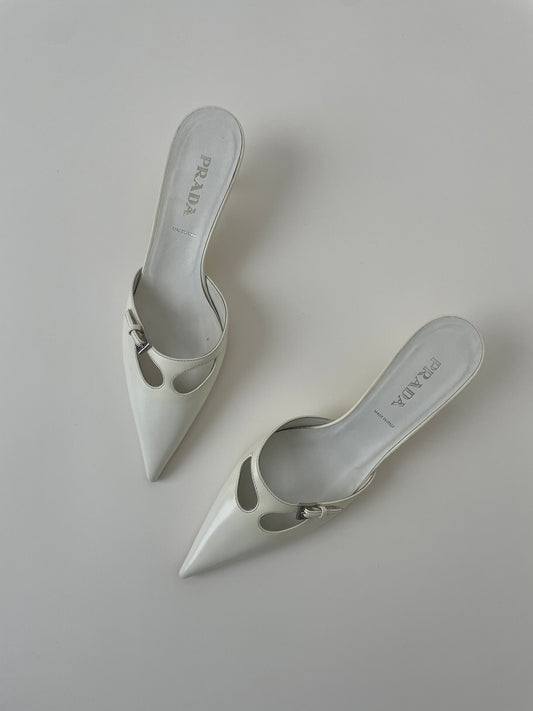 Prada 2000s white mini buckle kitten heel mules (EU 37 / US 6.5)