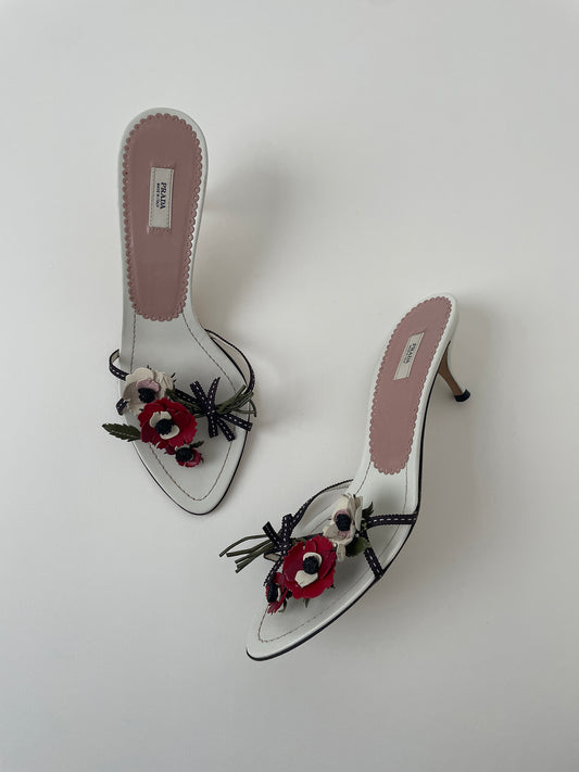 Prada white flower application bow kitten heels (EU 38,5 / US 8)