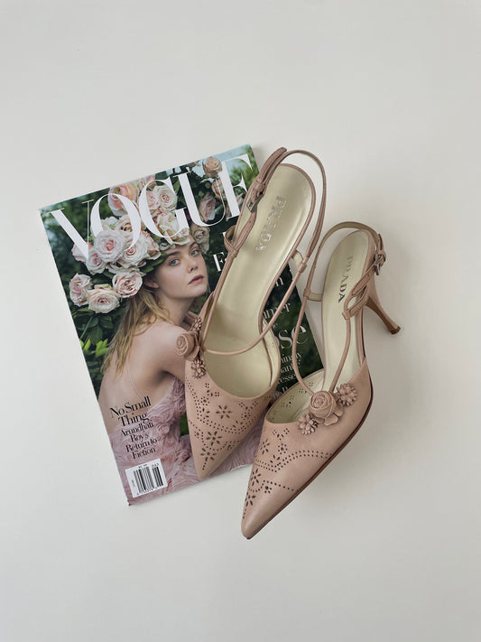 Prada nude eyelet and roses sling back pumps (EU 38,5 / US 8)