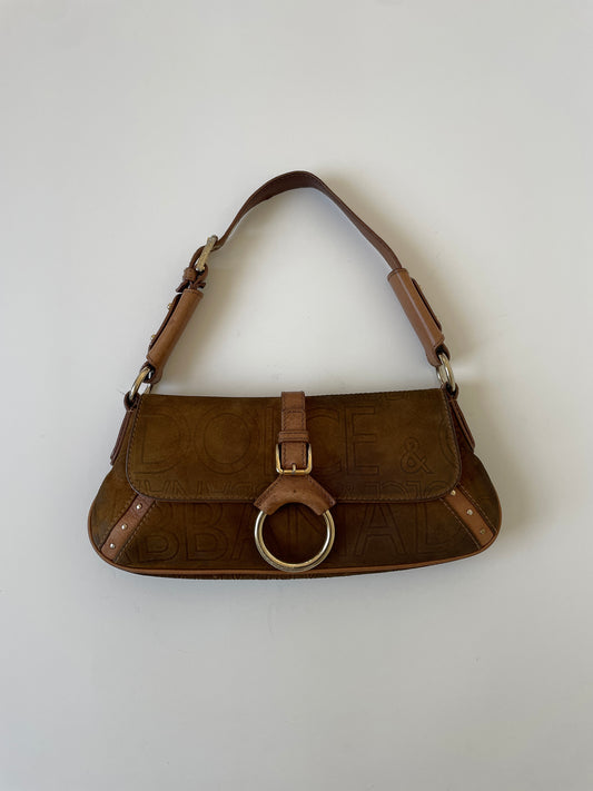 Dolce & Gabbana 2000s brown suede O-Ring baguette bag