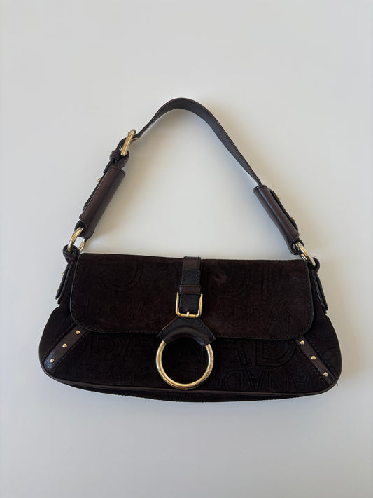 Dolce & Gabbana 2000s dark brown suede O-Ring baguette bag