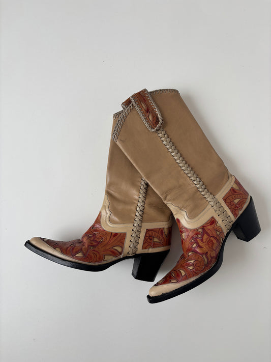Blumarine SS 2002 iconic beige hand painted western boots (EU 36 / US 5.5)