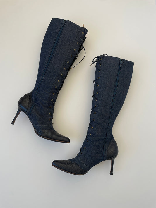 Christian Dior F/W 2000 by John Galliano denim python runway boots (EU 36,5 / US 6)
