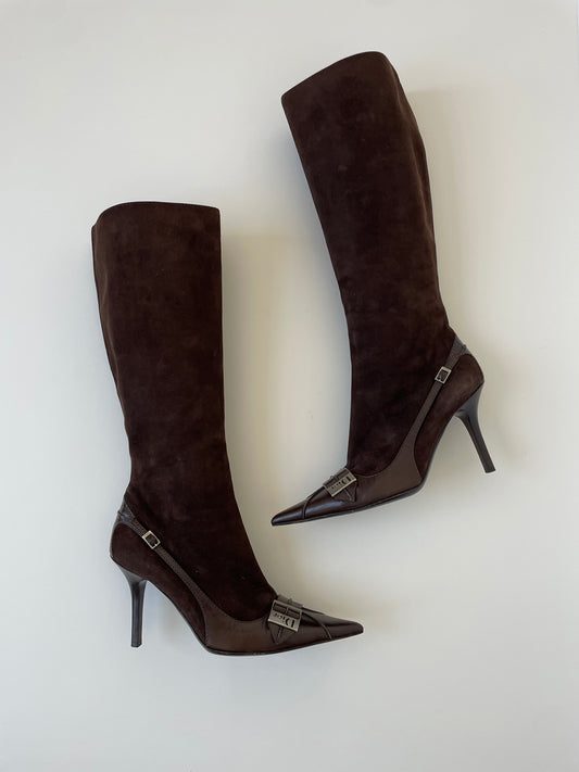 Prada 2000s brown suede buckle boots (EU 38 / US 7.5)