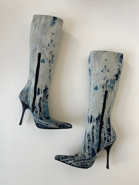 Roberto Cavalli 2000s denim tie dye boots (EU 37 / US 7)